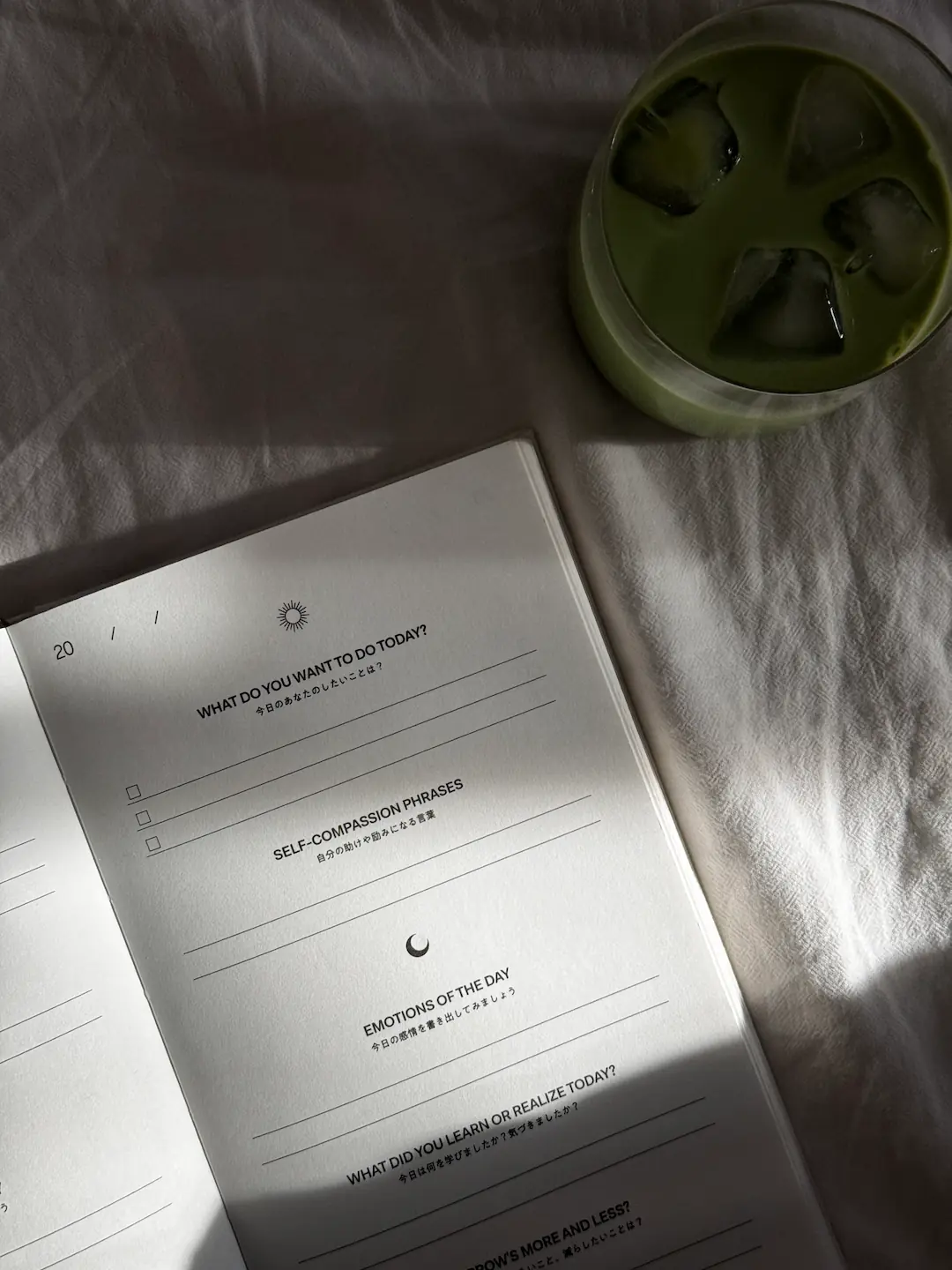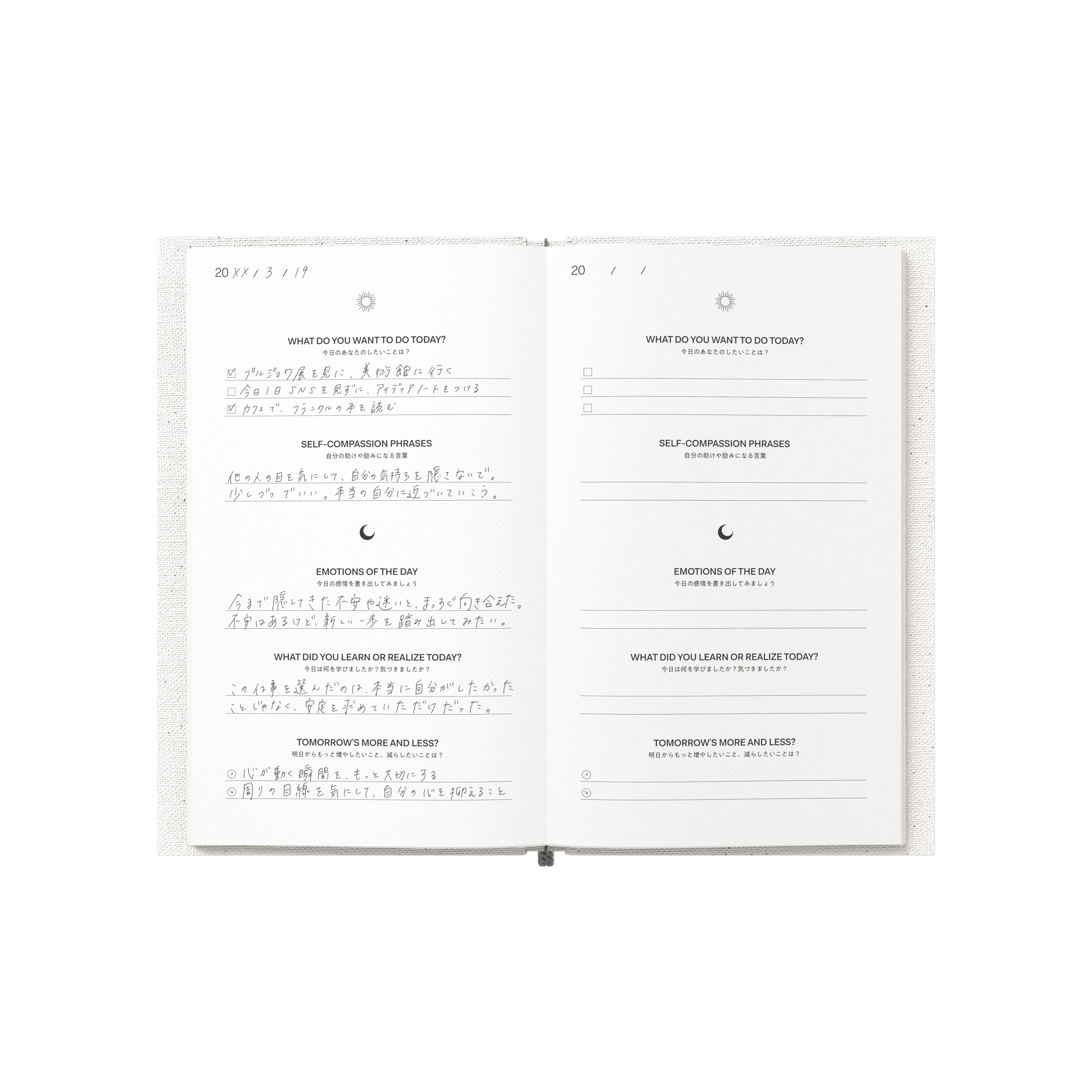 朝と夜、シンプルな問いに答えるだけで、 自然と自分自身に向き合う習慣になります。