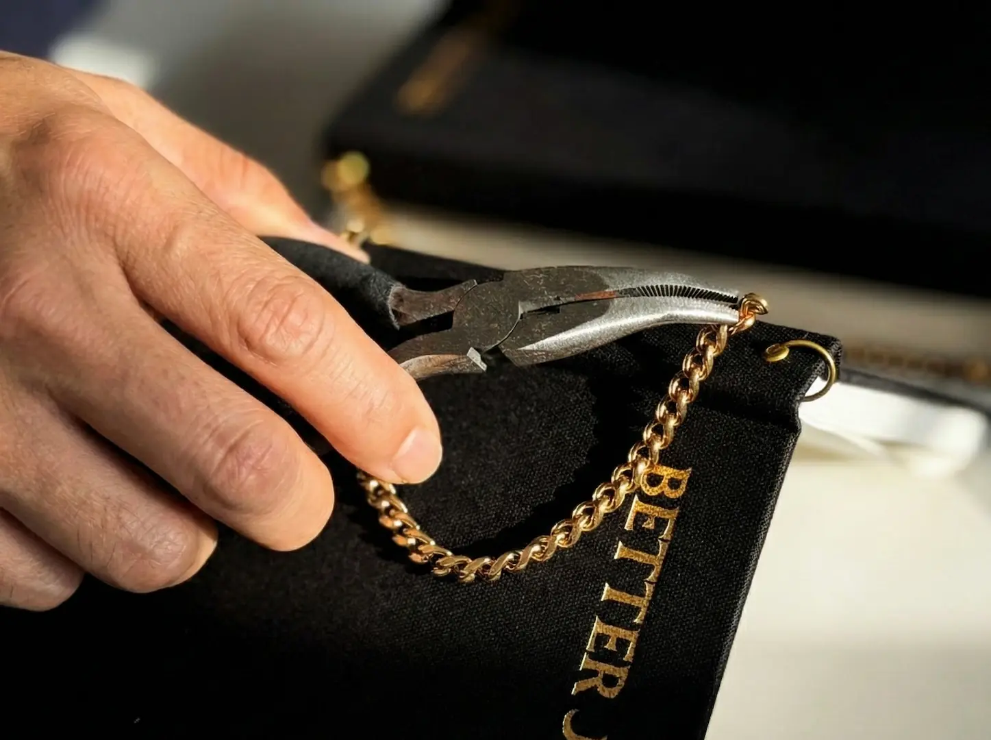 真鍮のチェーンを組み合わせた、常識にとらわれない自由なデザインは、BETTER JOURNEYの美学を表したものです。
